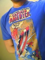 Ahora bien, estoy esperando que alguien me vea con la playera puesta y me diga que soy un imperialista o algo por el estilo. Probablemente sólo lo mande a leer Civil War para que entienda un poco el personaje antes de andar hablando babosadas. Si no, usaré el argumento de lo bien que me va ese color azul. En cualquier caso, me reservo otros comentarios acerca de «America» para este blog.