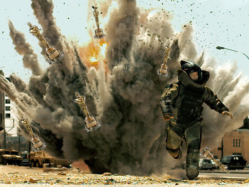 Intimidado por tanto galardón de la Academia de las Artes y las Ciencias Cinematográficas, a estas alturas no me siento capaz de criticar The Hurt Locker de Kathryn Bigelow. En mi humilde opinión es una buena película. Como nunca he estado en Iraq, no sabría decir si refleja la realidad o no, pero si quisieramos tomar el Realismo como un género cinematográfico, éste filme sería un excelente ejemplo (no sé si estoy usando bien el concepto de realismo, si quieren más rigor académico, investiguen acerca del Cine de realidad). The Hurt Locker no tiene una narración intricada, no tiene efectos increíbles, tampoco está en 3D. Es simplemente una película bien realizada. Guión, edición, sonido; tuvo sus premios bien merecidos. Yo incluso le hubiera dado el Oscar a mejor dirección de fotografía.