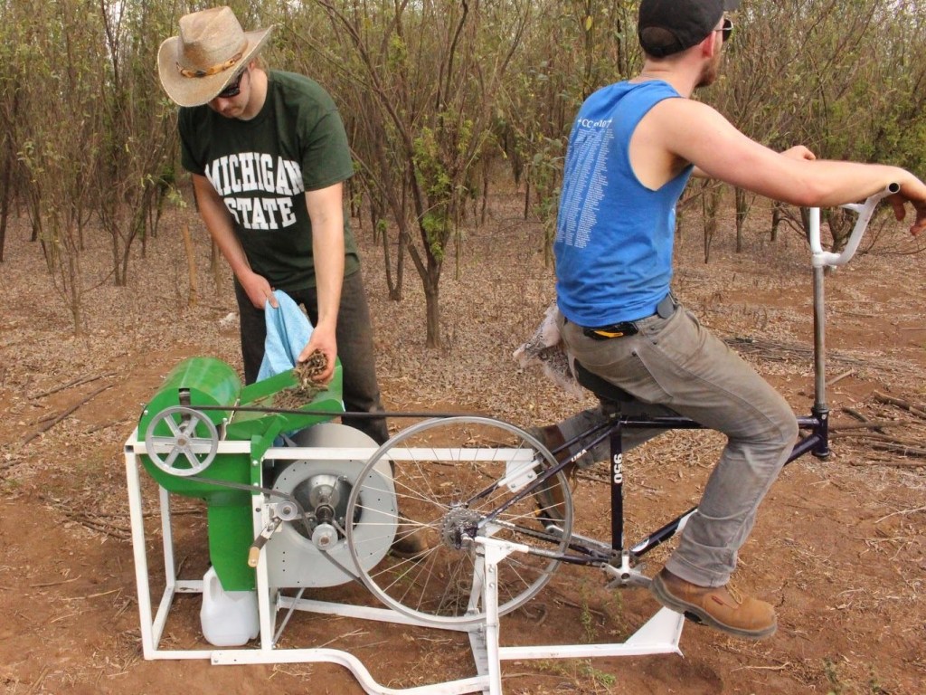 Una colaboración de estudiantes de la Universidad Estatal de Michigan y la organización Nueva Semilla es el segundo proyecto distinguido. Los universitarios diseñaron una trilladora de granos, específicamente para separar el grano de gandul, a partir de una bicicleta modificada. El gandul es una leguminosa nutritiva que puede cultivarse junto al ajonjolí después de cosechar el maíz. Semilla Nueva trabajar para introducir esta semilla en Guatemala para que los agricultores puedan contar con otra fuente de ingresos y mejorar su seguridad alimentaria.